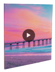 This 360 rotation shows our 1/4" thick acrylic face mount with diamond polished edge, metallic paper and dibond backer. It also shows the aluminum subframe float & hang.