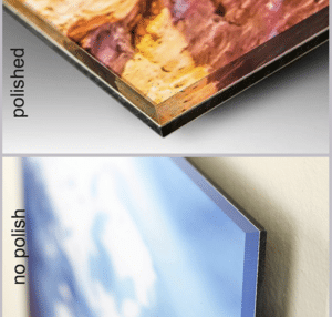 TIP:  With thicker acrylic the polished edge becomes more important.  So, with the 1/8″ we don’t feel it’s all that necessary.  It is recommended with the 1/4″.   It is required with the 1/2″ acrylic and 1″ blocks.  It’s the combo of the thicker acrylic and the diamond polished edge that gives the piece a really cool 3D effect.