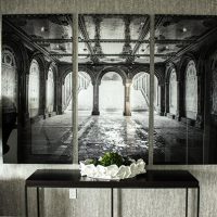 Unlike traditional glass, where light simply passes through, the light refracts within the acrylic creating tremendous vibrancy particularly when paired with metallic paper and overhead lighting.